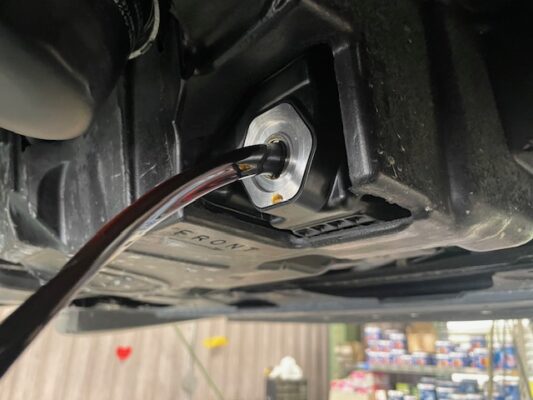 ↑エンジンオイルを排出し、オイルエレメントも同時に交換。