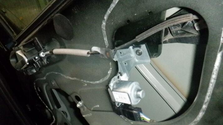 右後ろのパワーウインドウが動かないので内張を外して確認(モーターが動く音はします)