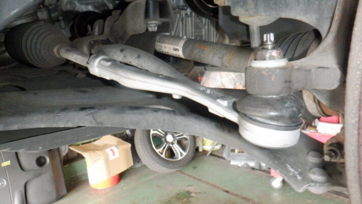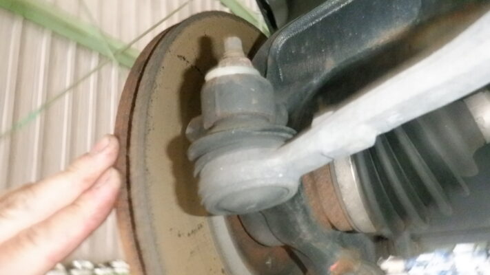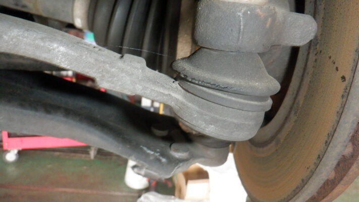 タイロッドエンドブーツが破れているので交換が必要です(左右)