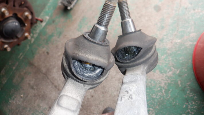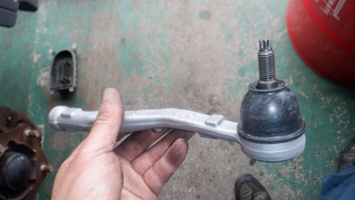 取り外したタイロッドエンドです、破れるとゴミや水が入ります、車検にも合格しません
