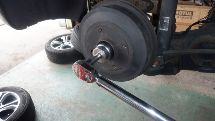 ドラムロックナットは交換して規定トルクで締め付けてます。