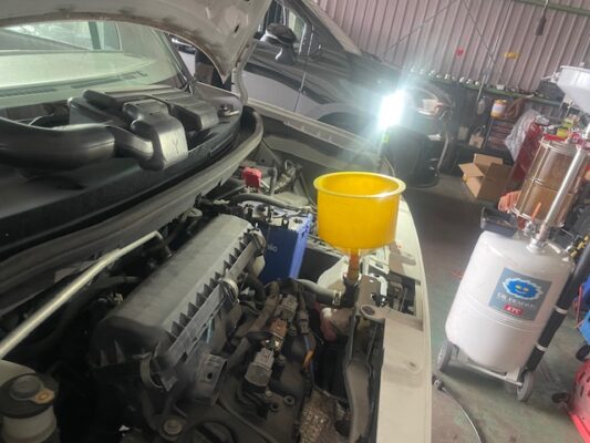 ↑エア抜きしながら、新しい冷却水を補充していきます。