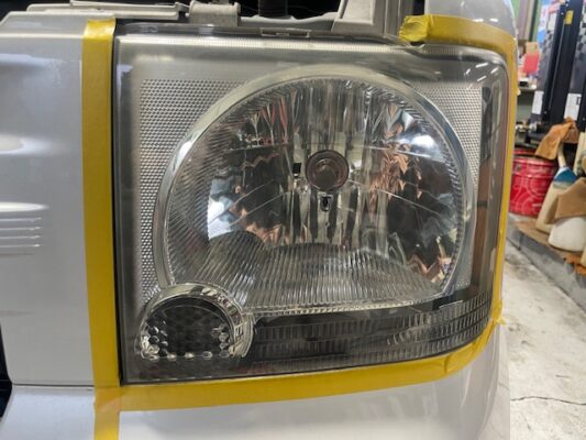 ↑車検では、定番メニューになりつつあるのがヘッドライトレンズのくすみ。