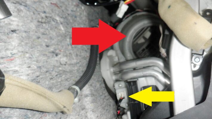 グローブボックスを外してブロアモーターを叩くと一瞬回るので