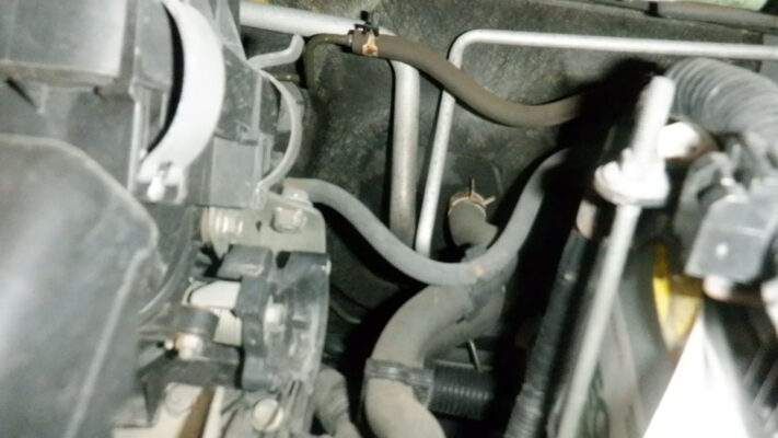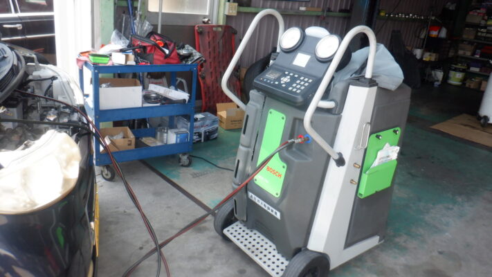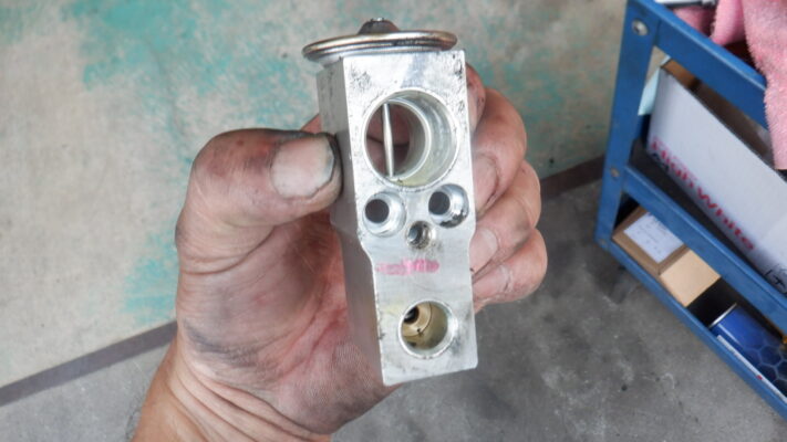 エキスパンションバルブはバッテリーの奥にあります、ガスを回収して取り外します