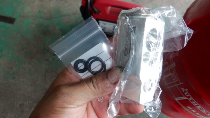 エキスパンションバルブ周りがオイルで濡れているので部品交換をします