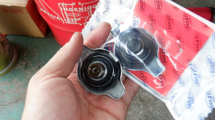 ラジエターキャップ周りから水漏れ跡があるので交換・補充