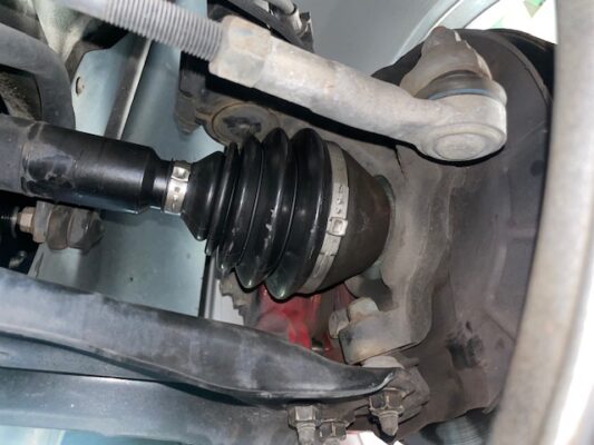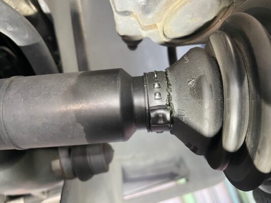 ↑点検時にドライブシャフト右のアウター側、ブーツバンド付近より