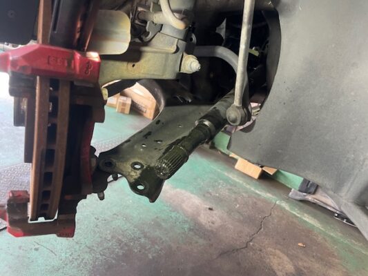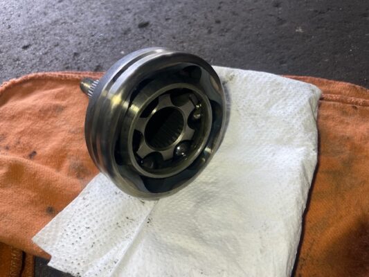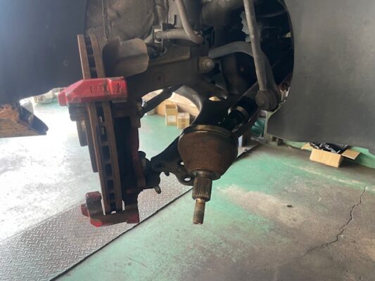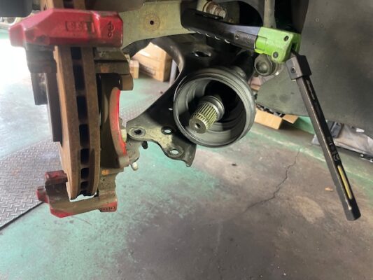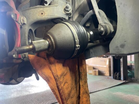 ↑ドライブシャフトのブーツを外し、