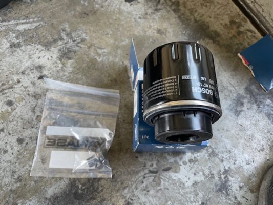 ↑オイルエレメントと、ドレンボルト(パッキン付き)を同時に交換。