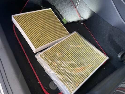 ↑室内のエアコンフィルターの交換。