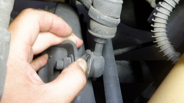 後ろのゴムのフタを外して調整します、(ご要望:強め→2ノッチ(普段サイドブレーキを3~4で調整)