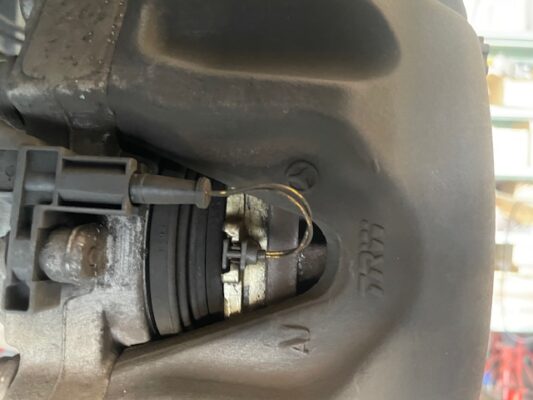 ↑リアブレーキパッド残量、8.0mm。