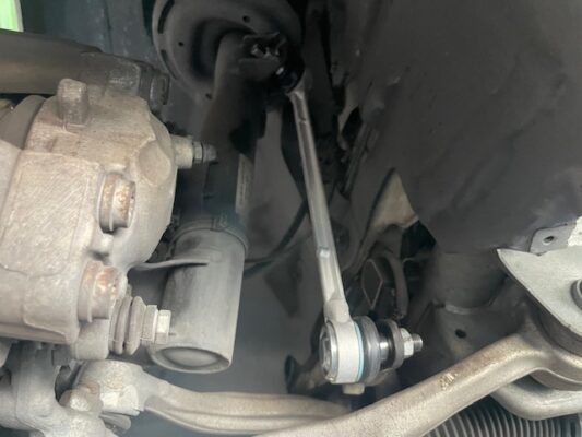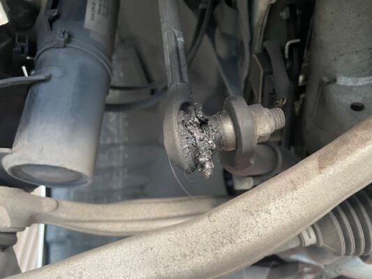 ↑フロント破れているブーツ部分、スタビリンクを左右取り外し、