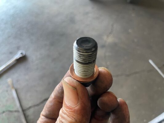 ↑エンジンオイルを排出し、