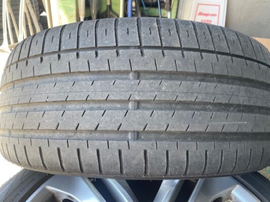 ↑リアタイヤ、スリップサインがでていますので、2本交換必要。