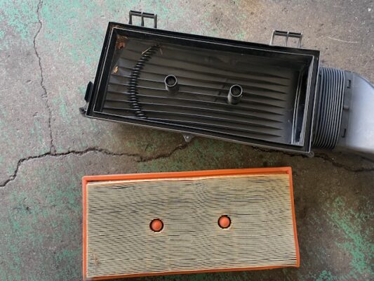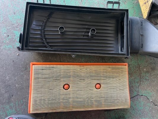 ↑エアエレメントの点検のため取り外し、