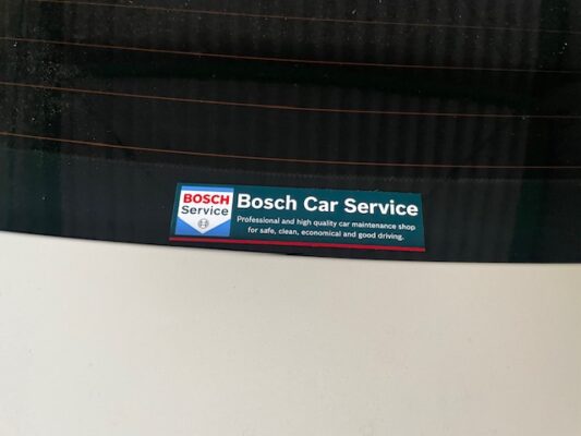 ↑リアガラスに新しいステッカーを貼らしていただいています。