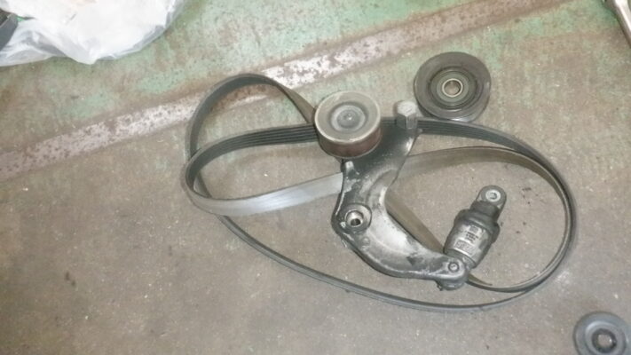 テンショナーを取り出すスペースを確保するためにオルタネーターを取り外しました。
