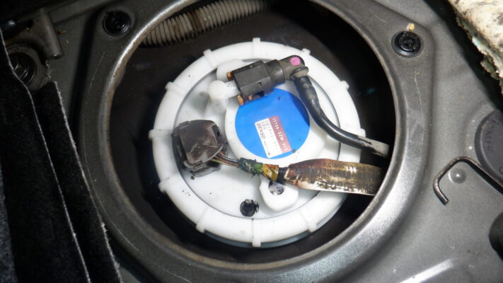 ガソリンの匂いがするので点検をすると、燃料ポンプからガソリンが漏れていました。