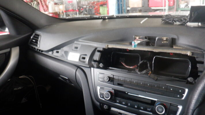 モニターはトルクスネジ2本で固定されているので外します(BMW純正モニターのよくある症状です)
