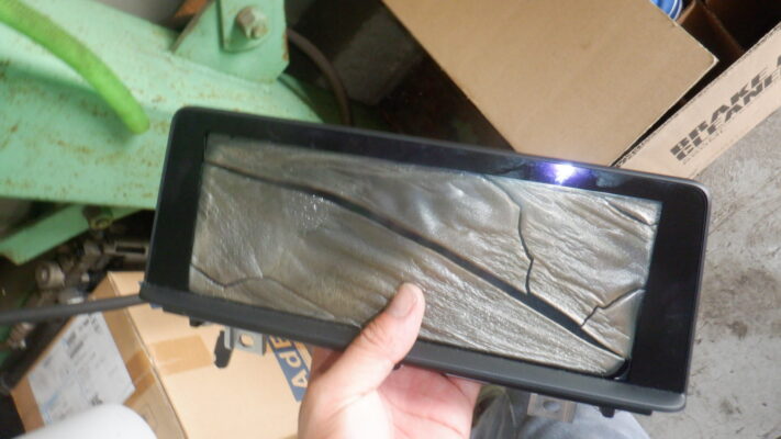回りのパネルを外します、爪で止まっているので内張はがしなどで手前に外れます、細い所は割れないように外します