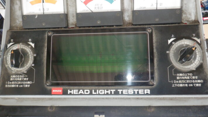 一通りの作業が完了し、ヘッドライトの光軸測定時にテスターをあてると