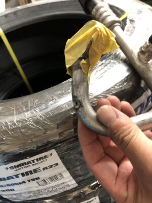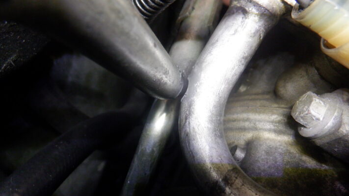 配管同士が接触している所は新しいゴム板を挟んでます、配管はどちらも動かして隙間を広げられないので定期的に確認品がら交換がオススメです、(オイル交換などメンテナンス来店時に確認・報告いたします)