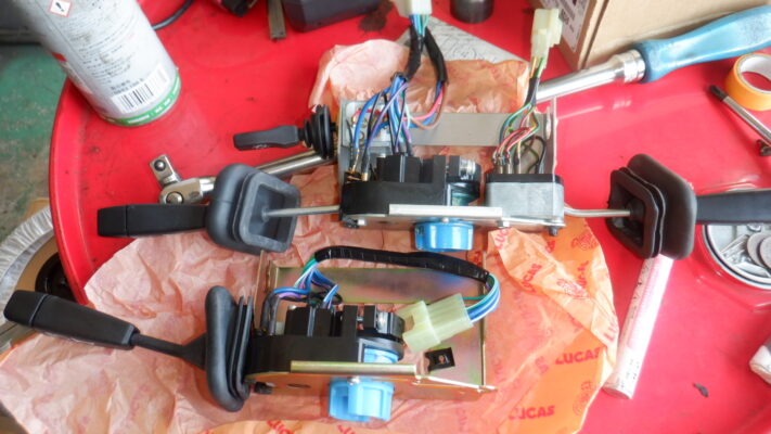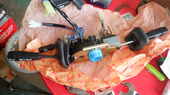 ウインカーレバースイッチを取り外して必要なライトとワイパースイッチを移植しました