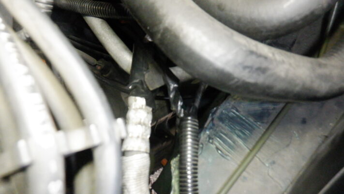 <室内の入る配管同士が接触する可能性があるのでこちらも巻いてます>(エンジン左後ろ)