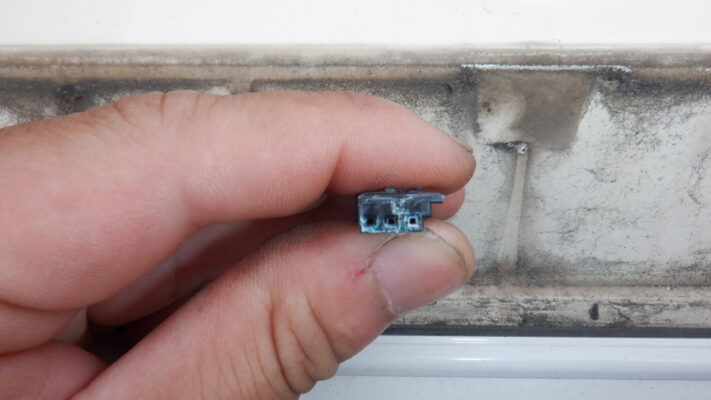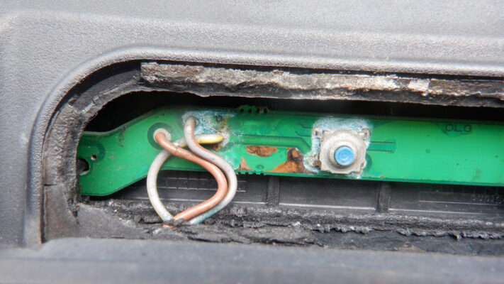 開閉ボタンのゴムが無くなっているのを発見。基盤がむき出しの状態でした。
