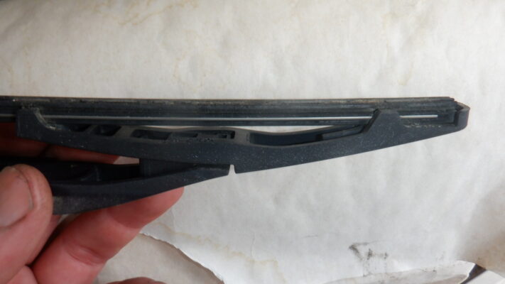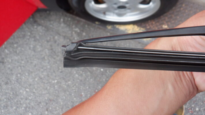 フロントワイパーに形状が合わないゴムが無理やり装着されていました。