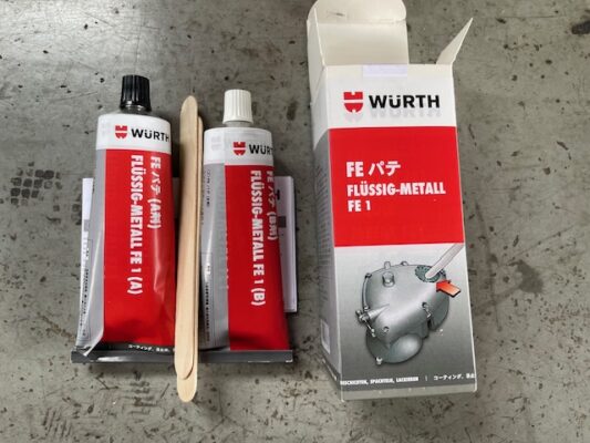 ↑とりあえず応急処置のため、鉄パテで対応。