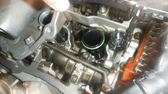 ヘッドカバーを取り外して古いガスケットも清掃しながら外します