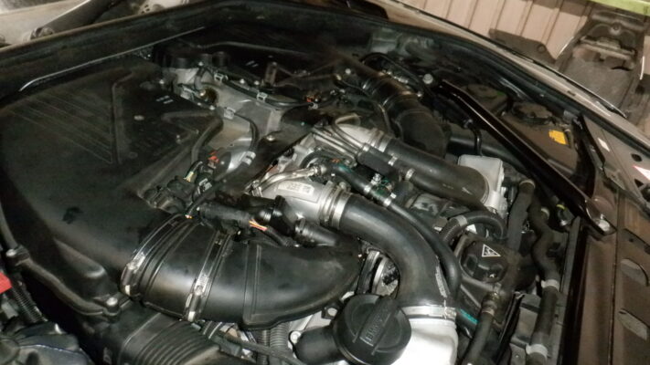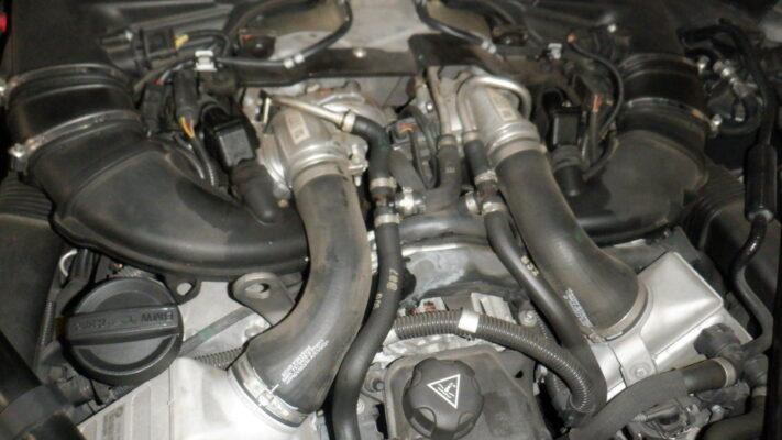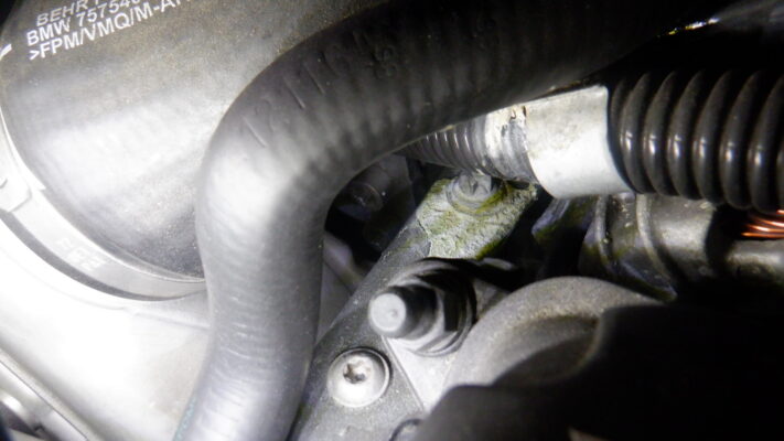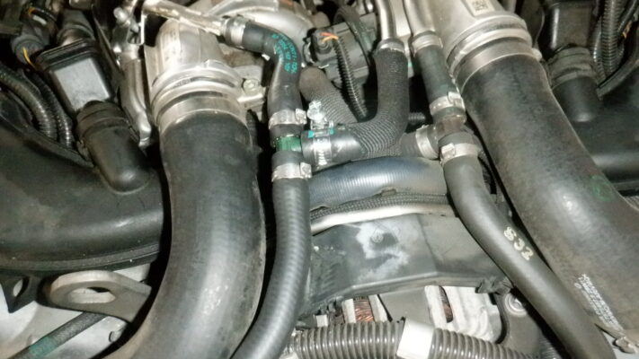 漏れはエンジン上のターボ周りのホースから漏れていました。
