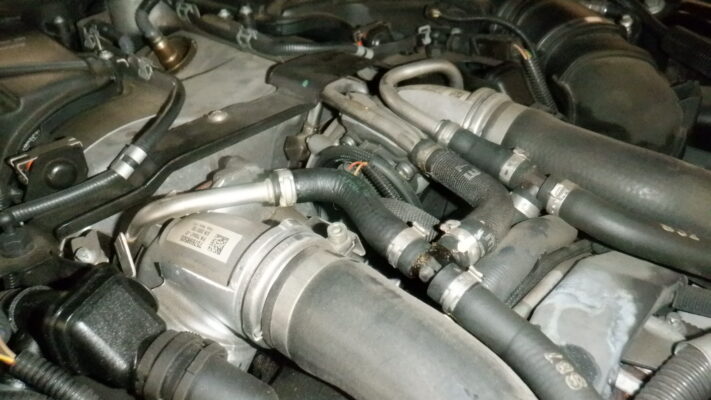 出来るだけ冷却水の跡の清掃をして、冷却水を補充・エア抜きをしながら漏れの再点検