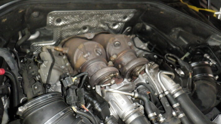 配管を外すのにエレメントケース・センサー・ターボ周りの遮熱板を外します