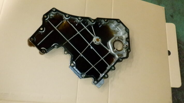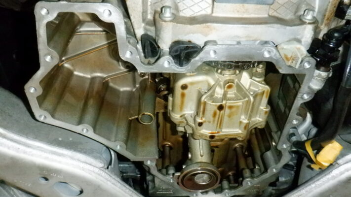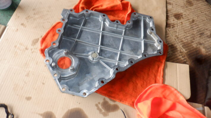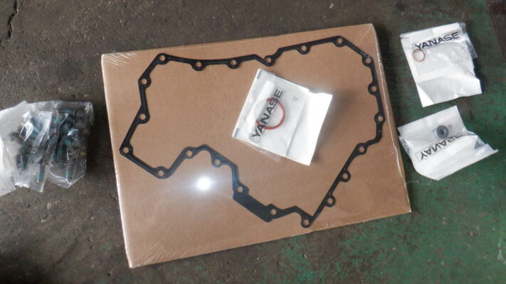 オイルパンの下が濡れているのでガスケットを交換しました。(冷却水も落ちてきていました)