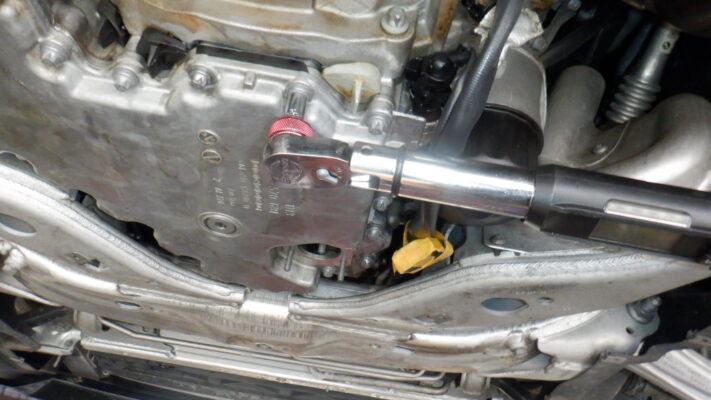 オイルパン取り付け面を清掃 ・ボルトのネジ山周りの汚れ・古い緩み止め防止剤を清掃