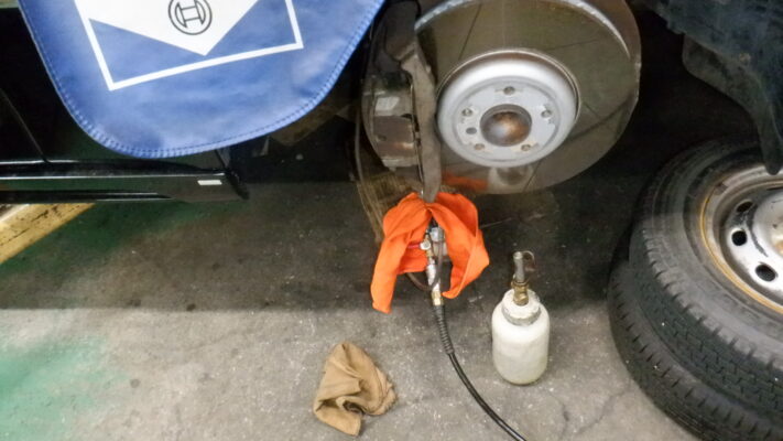 リヤ・ブレーキ点検・清掃・ブレーキパット残量8.6mm