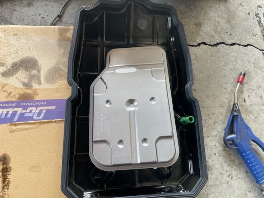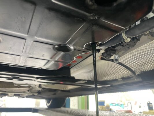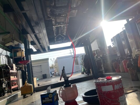 ↑まずはオートマフルード交換から。油温が下がりきった状態から始めます。