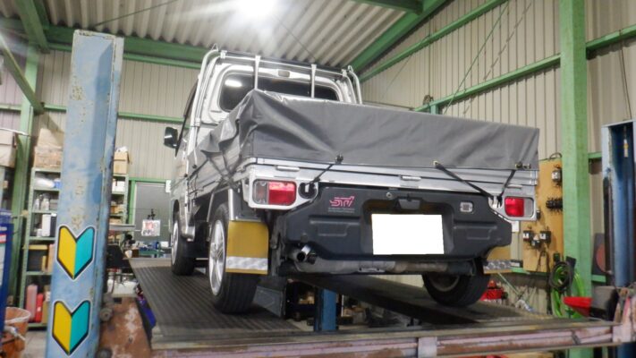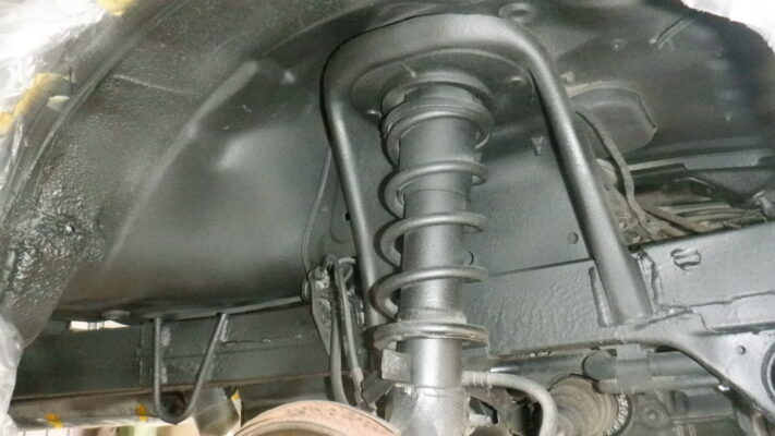 下回り点検・カラー類取り外し→ 下回り洗浄→ 酷い錆び箇所の対策(出来る範囲)→ ボディ周り養生→ UBS施工→ 乾燥・塗装状態確認→ 取り外した部品を取り付け→ 最終確認をして完成