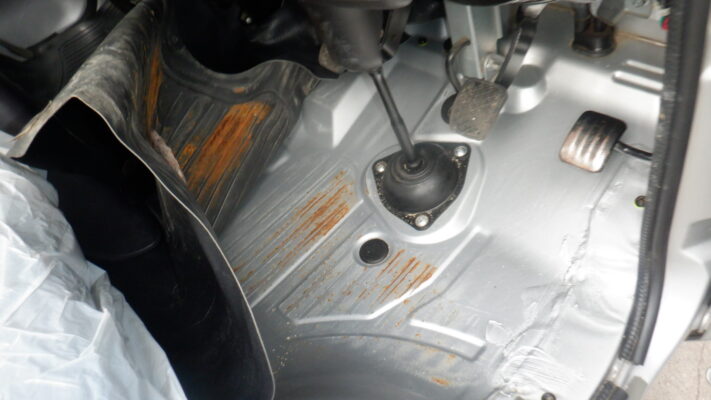 フロアマットの下が錆びているのでこれ以上ひどくならないように予防対策をしました