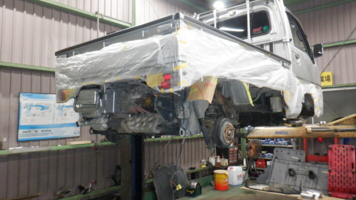 リフトアップ カバー類を取り外しながら下回りの状態を確認します