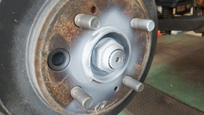 タイヤを取り付け前にハブ周りの錆を落としてグリスアップしました。