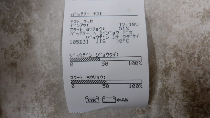 バッテリーはテスターで状態確認をすると