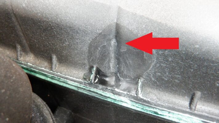 矢印の所にクラックが入っていました。