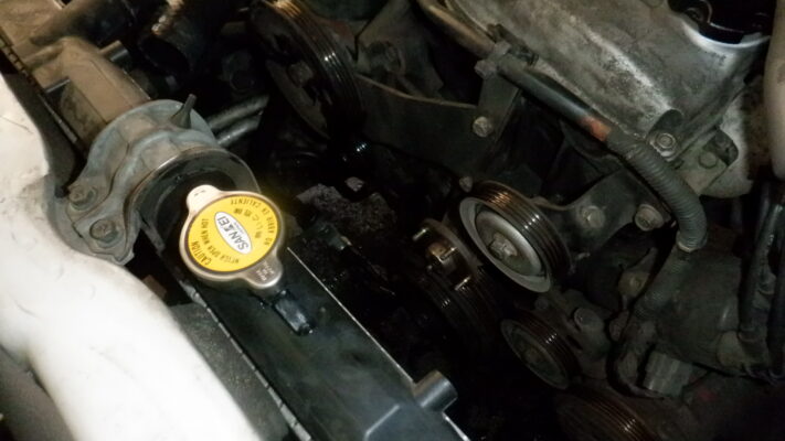 オイル交換でご来店時に冷却水サブタンクの量が減っていました、下回りは確認しましたが冷却水は確認できず、前回整備時に水漏れ修理をしているので補充をして様子を見ていただきました。(以前修理した箇所などを点検)