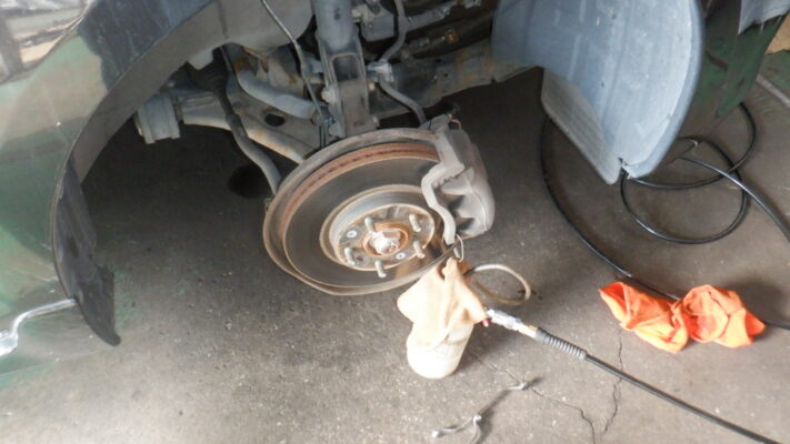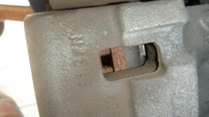 リヤ・ブレーキ点検・清掃・ブレーキパット残量6.1mm
