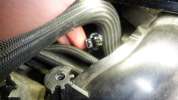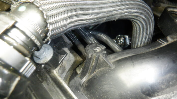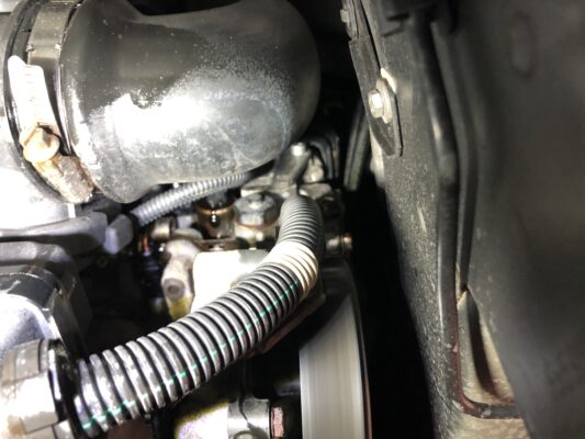 エンジン裏側にあるセンサーがオイルが漏れてくるので交換です。